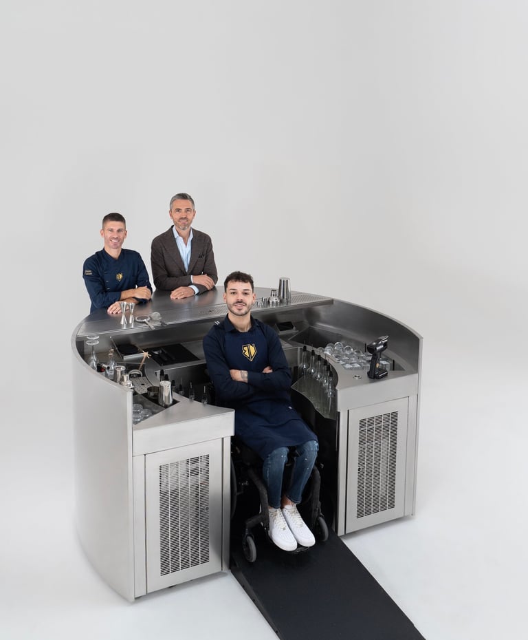 La prima postazione bar che dà pari opportunità. MoonOpen nasce da una visione semplice ma rivoluzionaria: rendere il bar un luogo accessibile a tutti, senza rinunciare a bellezza, tecnologia e performance. È la prima workstation progettata per offrire le stesse possibilità operative anche a chi lavora da seduto, abbattendo le barriere fisiche e culturali che troppo spesso limitano il talento. Ogni dettaglio è frutto di ascolto, ricerca e manifattura d’eccellenza. Moon Open non è un compromesso, è un’evoluzione: ergonomica, modulare, completamente attrezzata con tutti gli optional che un mixologist professionista desidera. Dalla postazione ghiaccio ai vani refrigerati, dai moduli personalizzabili agli spazi di lavoro pensati per ottimizzare ogni gesto — tutto è studiato per garantire efficienza, comfort e libertà di movimento. Moon Open è più di un banco: è un messaggio potente di inclusione, è uno strumento di lavoro avanzato, è una nuova idea di futuro nel mondo bar.